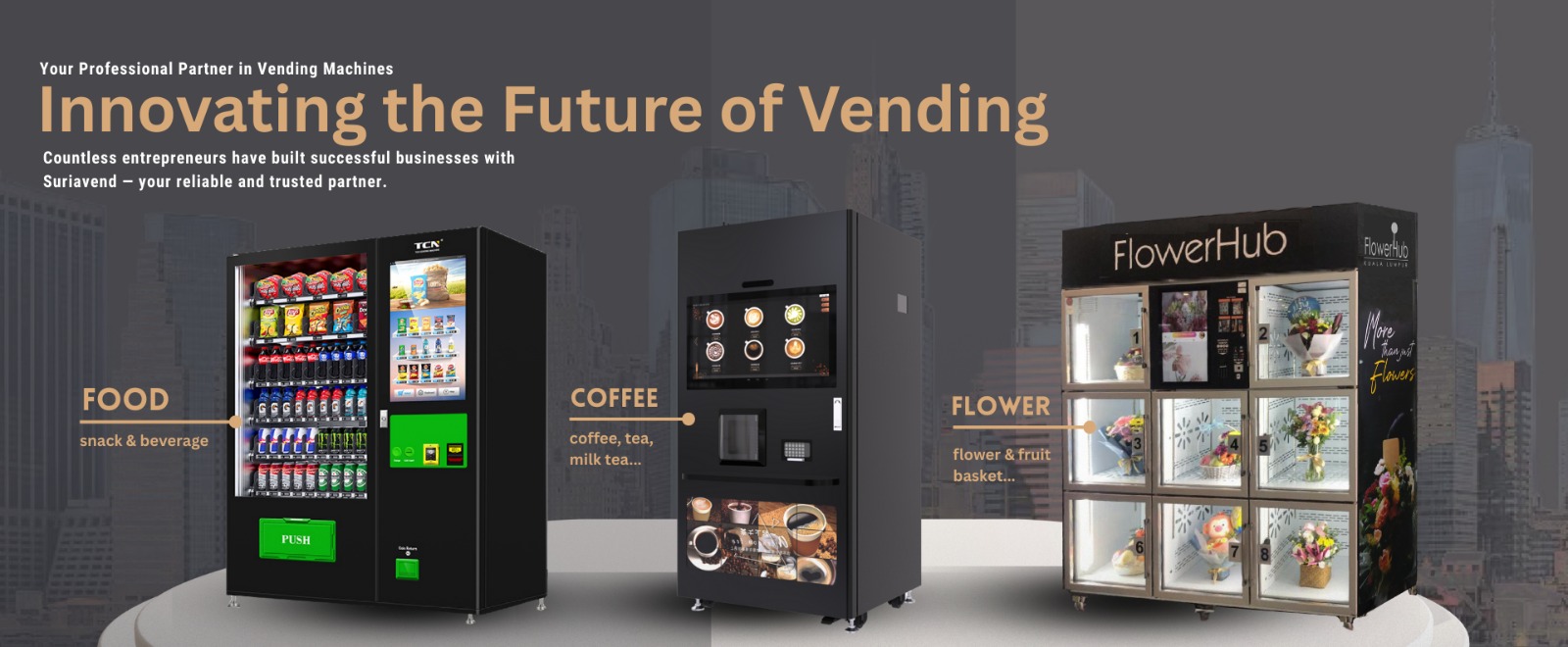 SuriaVend Technology is a leading innovator in the vending machine industry, built on years of hands-on experience and a strong commitment to efficiency, quality, and customer satisfaction. By implementing the 5S methodology and developing proprietary in-house software, we deliver optimized vending solutions tailored to our clients’ needs. Our dedicated sales and technical teams ensure responsive service, minimal downtime, and seamless restocking, supported by a comprehensive inventory of spare parts. As we expand internationally, our OEM brand reflects our drive for excellence and innovation—offering not just vending machines, but complete solutions to enhance operational success.